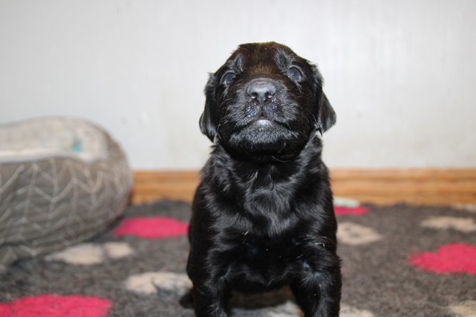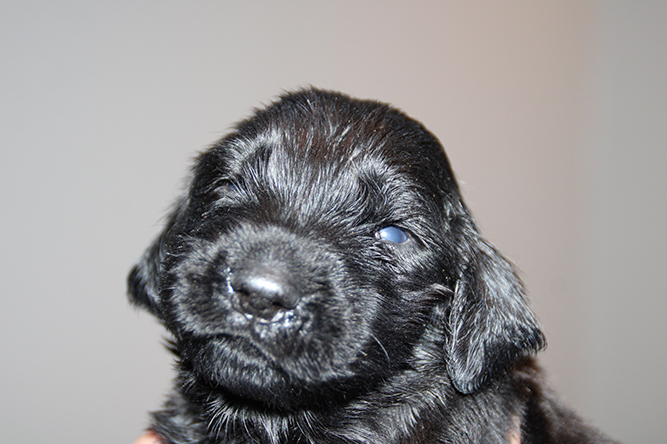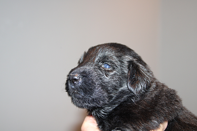 06.10.25.Nå begynner den neste spennende tiden her. Øyen sprekkene begynner å bli mer å mer markerte å de åpner øynene i løpet av få dager. I ngen har begynt å glippe noe med øynene enda men man ser å tydelig at det er hakket før nå. De ser jo ikke så mye de første dagene men det er så fantastisk når de begynner å glippe mot den store verden :-) I dag er det ny kontroll på veterinær klinikken. Men i dag lar vi valpene bli igjen hjemme. Jeanette hjelper til så e er i trygge hender :-) Blir ikke lange tiden borte. Her er gutt høyrebak og gutt venstre bak