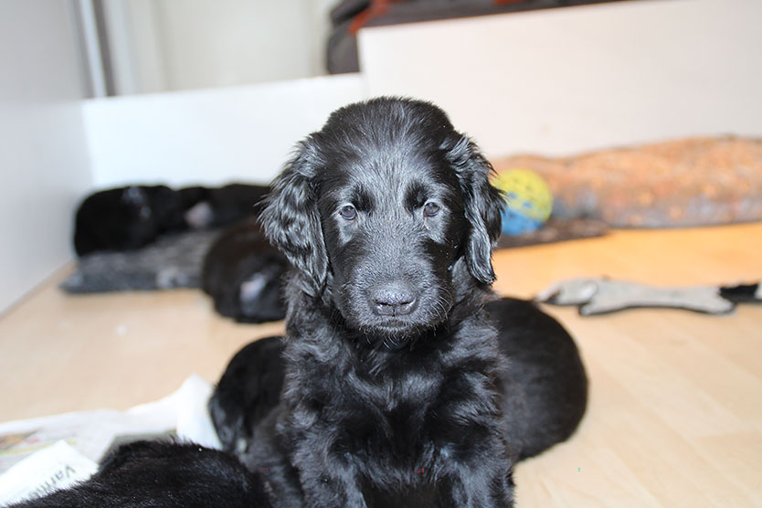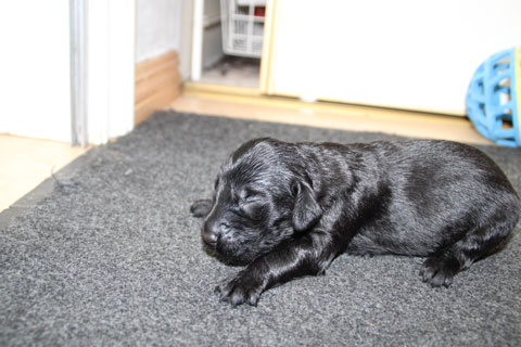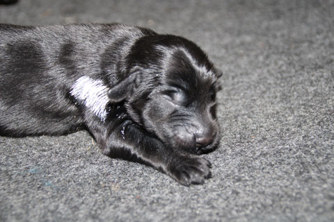 Kl 17.50 De to første valpene er kommet :-) 2 flotte sorte gutter :-) Emma er helt fantastisk med sine skjønne troll. Flere vil ut :-)