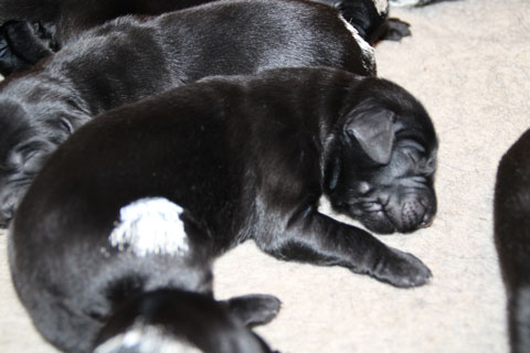 12.09.20. I går ettermiddag ble det fødsel på nabo rommet. Emma lurte fælt på de som ble født der. Hun ville gjerne ha de inn til seg :-) Små trolla tar livet med stor ro. Det er et mye liv når de er våkne ale 11 samtidig og leter etter hver sin pupp. Det yrer i valpe kassen :-) Så når melken er sluppet ned av mammaen og de er mette og fornøyde sover de godt igjen. De er bare helt til å spise opp og man blir liksom ikke mett av å sitte å se på de små vidunderne . Her er jente merket venstre fot foran og gutt merket høyre fot foran