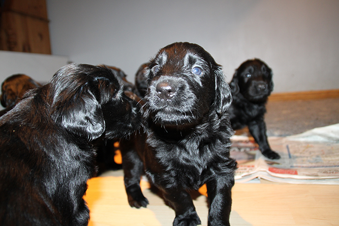 28.11.20 I dag må vi lage større plass her. Det er helt utrolig hvor store de er blitt å hvilken fart det er når det vrimler rundt valpe kassen- Allora må ha hjelp for å kunne legge seg ned når det yrer rundt bena hennes. Alle glipper med øynene nå men det er ikke lett å få tatt fine bilder enda. De kniper når det blitser :-) Her er Jente nakken og gutt nakken.