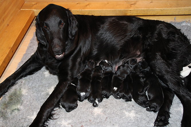 17.11.20. Allora stor koser seg med sine skjønne små troll. Hun er flink å vet hvor hun har alle sammen. Alle har lagt litt på seg siden fødsel. De spiser sover tisser og bæsjer :-) Vi har fordelt ut alle valpene nå. Så de som ikke har hørt noe nå må vente på neste valpekull som blir født ca 27 november. Da kontakter vi alle . En tispe skal vi sette ut på for/del eie. hvis vi finner en familie i nærheten- Her er jente merket rumpen og gutt merket rumpen.