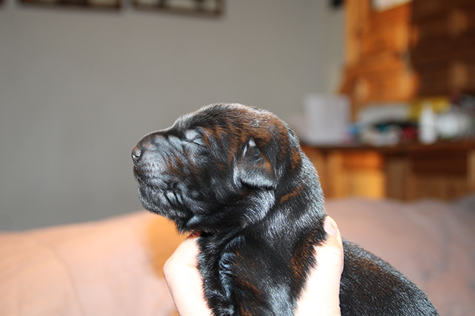 01.12.20 . I går fikk de smake litt hundegrøt to ganger. Det er godt det. Merker også at de blir roligere av å få fast føde i magen. Sover lenger mellom melken da. Så det metter mer. Det er trangt i melke baren nå så når Allora legger seg ned for å gi melk må jeg passe på at alle får hver sin pupp. Det er så sinnsvakt trangt :-) I dag jobber jeg en del timer og Nina kommer å passer her fra jeg går til Kjell kommer hjem . Da er de i trygge hender :-)Her er Jhode og gutt hode.