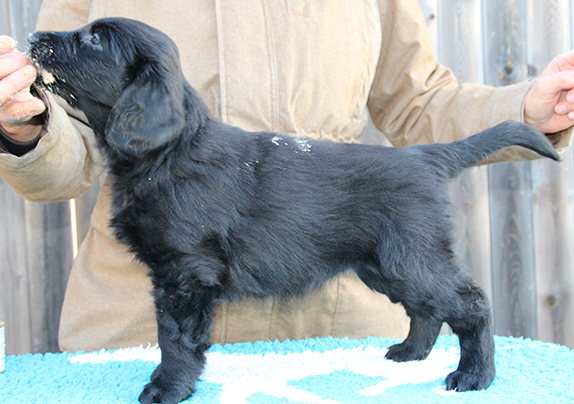 16.10.25. Den første spede leken har begynt . Så i går fikk de masse leker å holde på å sutte på å bite i også . Det var spennende det. Katten Katia tok seg en undersøkelse runde oppi valpekassen også i går. Kimmie er heldigvis en veldig snill hund så hun stoler helt på husets katter :-)Saga var en kjapp tur innom på besøk i går også. Hun er nå 45 dager på vei å er god å rund. Hun fikk være med litt jakt trening i går. Å er kjempe sprek . Men man ser jo at magen begynner å hemme henne mer :-) Her er jente rumpe og gutt rumpe