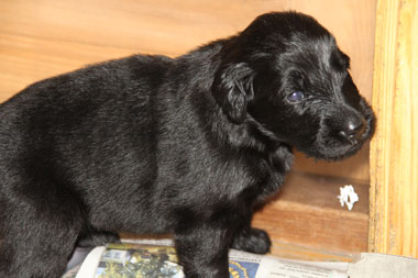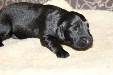 30.09.14. Trolla vokser så man nesten ser det fra morgen til kveld. Det er mye som skjer nå :-) Mollie ligger ikke hele tiden i kassen med de mere. Når de sovner etter melk så tar hun seg en tur ut i stua. Men så fort det er en liten lyd så forter hun seg inn igjen å sjekker . Hun er en kjempe flink mamma. Her er Titla & Flax