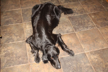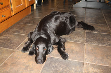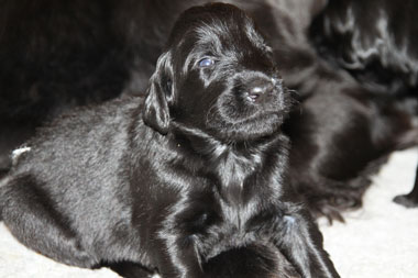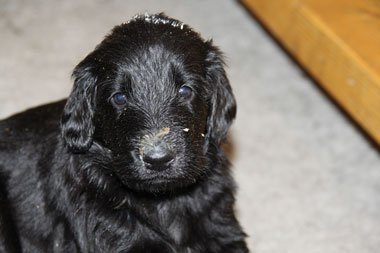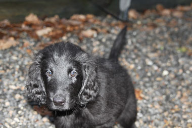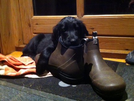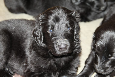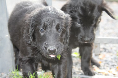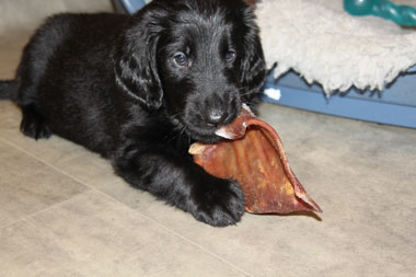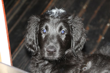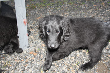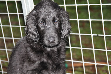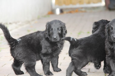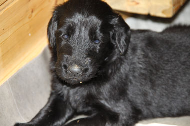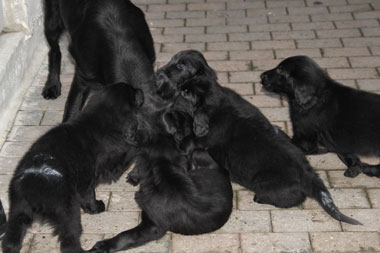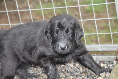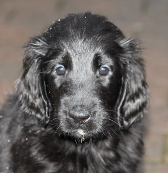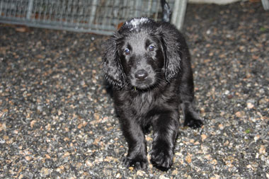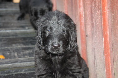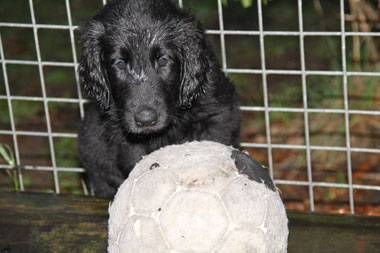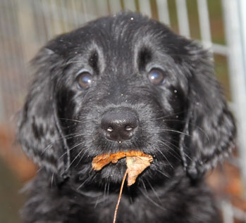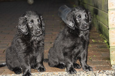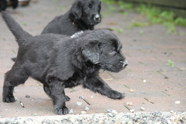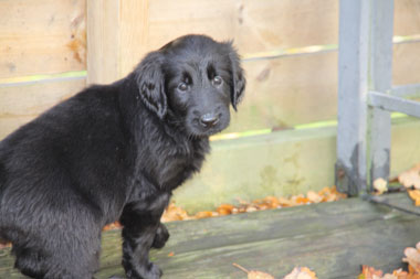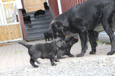 24.10.14. Huff for et vær det er om dagen. Godt vi har hus å bo i spør du meg. Men de voksne flattene elsker alt vannet.Særlig på tur i skogen med masse flotte store vann damer å bade i :-) Valpene får være korte turer ute når det er opphold. Da stor koser de seg. Når det pøser ned så er vi inne å koser oss i steden. :-) Her er Kita & Chania