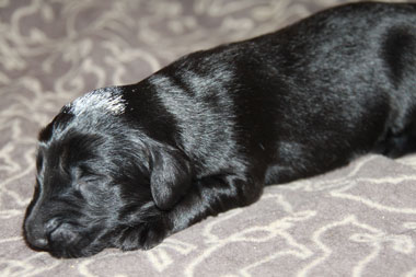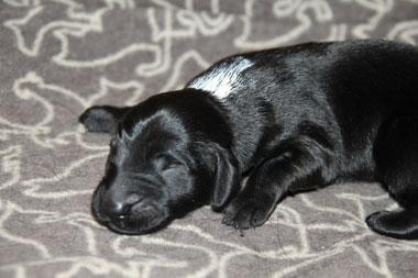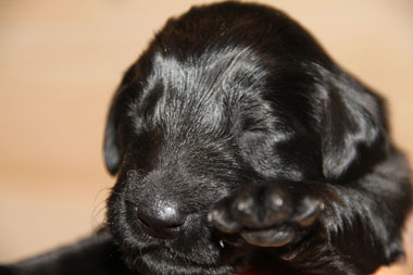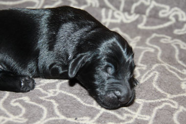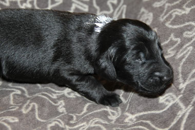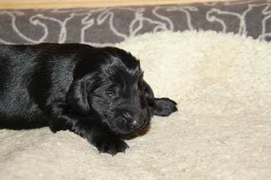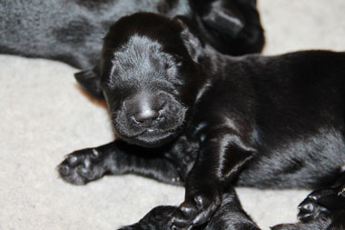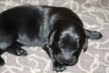 26.09.14. Nå er små trolla blitt 5 døgn gamle. Øyen sprekkene er blitt mere markerte. De er lubne og gode. Ørene har fått litt annen form så det skjer mye fra dag til dag.De føler varme og kulde. Sult og mettehets følelse.De lukter også godt nå. Når jeg setter meg oppi valpekassen så våkner de fort fordi lukten av meg samfaller de med melk fra Mollie . jeg sitter jo som regel godt oppi der hver gang hun gir melk å følger med :-) Her er Freddy og Flax