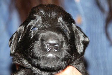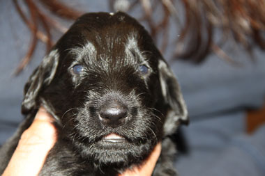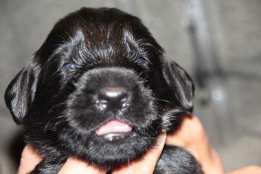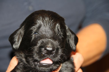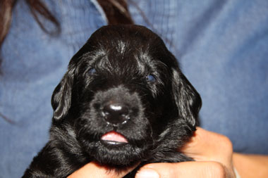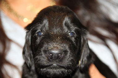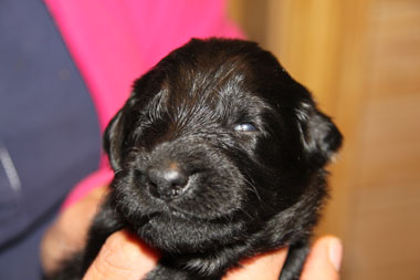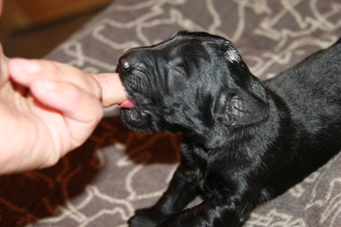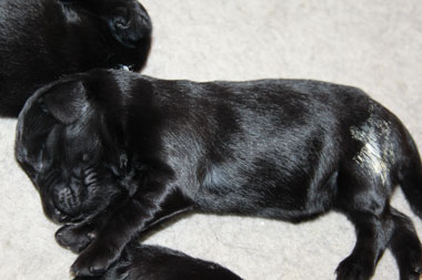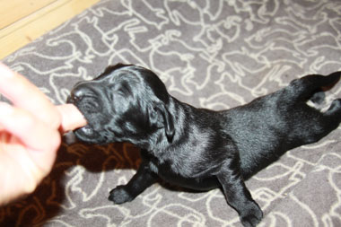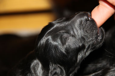 27.09.14. Nå er det snart en uke siden de skjønne små silkesvarte trolla ble født. Utrolig hvor fort tiden flyr. Har alt begynt å grue for at de skal flytte om 7 uker :-) Vil tro jeg tenker litt anderledes når de er kommet i 8 ukers alderen og man skjønner hvor mye kos og kjærlighet hver valp da ønsker seg. Da er de virkelig klare for nye hjem :-) Her er Kita & Chania som sjekker min finger om det skulle finnes en aldri så liten melkedråpe der :-)