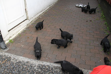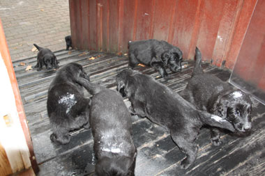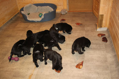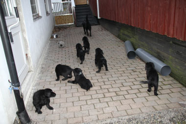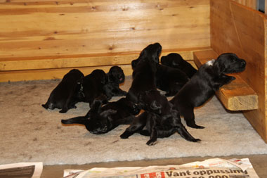 30.10.14. Maken til Fantastiske valper skal man lete lenge etter. De er så utrolig flinke til å ville gjøre i fra seg ute.Når jeg blåser i fløyten så kommer alle 9 løpende. Utrolig godt de er solgt for begynner jo virkelig å ha lyst på en til :-)Griseører er kjempe populært nå om dagen. Samt søk etter godbiter. Det er også velig gøy.Det var foresten utrolig deilig å få Kjell hjem igjen slik at vi er to på kl 5 maten og stellet her :-)Det var noen utålmodige voksne hunder i går morges som synes jeg brukte veldig lang tid på valpene og de holdt jo på å sulte i hjel som vanlig ;-) Her er alle som søker så er det Maya Og Nero
