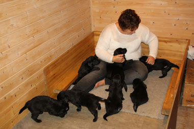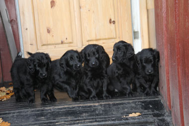 11.11.14.I dag er det tid for vaksinering og helse sjekk. :-) Litt bil kjøre trening blir det også igjen :-) Nå ringer Elizabeth fra Agria til alle for å få bekreftet at dere skal forsikre hunden.Alle må være ferdig vidre tegnet med forsikring i Agria på dere som nye eiere før de får flytte så viktig at dette er i orden :-)Her er er 8 troll som lurer fælt på hvor det blir av meg og den siste valpen :-) Stua er blitt et populært sted kan man tenke :-)Så skjønner jo at det nå snart er tid for å flytte. Så er det Freddy & Flax
