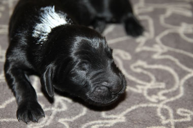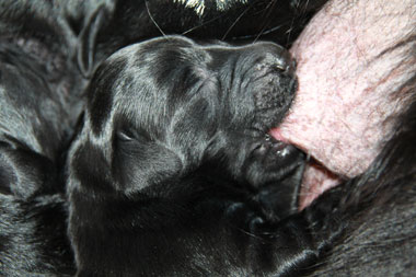23.09.14.I dag er små trolla blitt 2 døgn gamle. Natten har vært ganske så rolig ,bare Mollie ssom måtte ut et par ganger. Litt mye grufs i magen som hun har fått i seg ved fødsel som bare må ut :-) De virker så fornøyde alle sammen. det er lite lyd i valpekassen og det tegner jo bra :-) Her er Jente merket venstrebak = JVB Kiara & jente merket høyrebak = JHB Chania. Så er det hele gjengen i full harmoni etter en sup melk