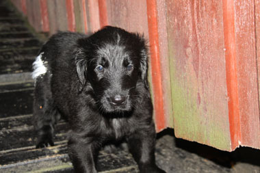 22.10.14.Heldigvis var det opphold og grei tempratur når trolla skulle ha maten sin i går. For ute er nå blitt et veldig spennende sted å være. Og må jo bare innrømme at det er veldig deilig når alle bæsjer etter mat ute :-) De blir flinkerer og flinkerer til å gå opp og ned "låvetrappen" vår også. Her får de trent motorikken så det suser. Her er Trolla som styrer opp og ned ute. Så fikk vi nå på formiddagen besøk av "Oldemor" Nina som har bestemoren til valpene - fine Lady. Så nå har trolla fått mase kos og oppmerksomhet. :-)Så er det Titla og Pepper.Nb husk å gi meg navnet dere vil kalle valpene dere som ikke har gjort dette :-)