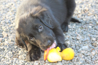 26.12.15. I dag øker vi til tre små måltider med valpegrøt. Den går ned på høykant. Zaga synes også det er greit å ta vasken etterpå så hun får litt rester :-) Her er Zarina og Lennox