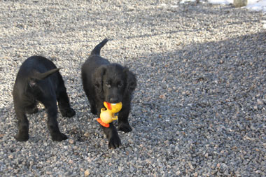 29.01.16. I går kveld reiste Zarina med sin nye familie. Hun er et etterlengtet "barn" så blir spennende å høre tilbake meldinger utover dagen hvordan det går. Turen hjem gikk i hvertfall kjempe bra. I dag reiser Aslan også hjem til sin nye familie. I går flyttet fine Lovende Fritz tilbake hit . Han er 9 1/2 uke å trenger et nytt hjem p.g.a sykdom i familien som hadde kjøpt han.Han er en utrolig flott liten valp som bare er så herlig. :-)Ring oss gjerne hvis du har lyst på en skjønn ung herremann :-) Her er Aslan og Linus.