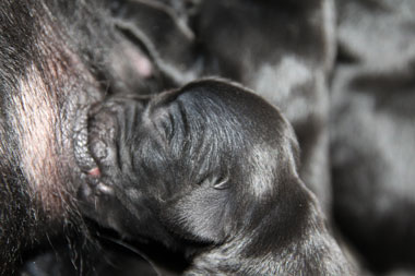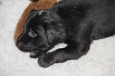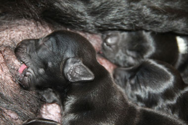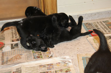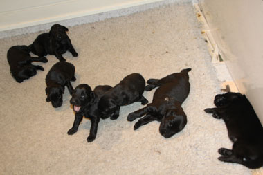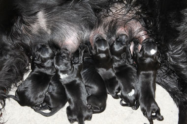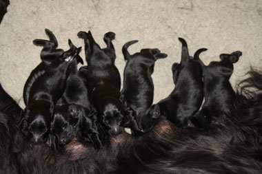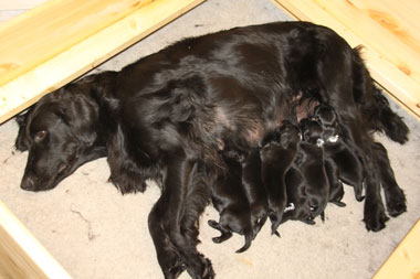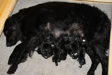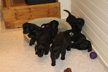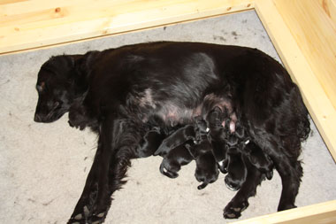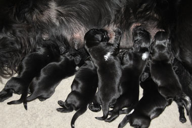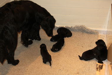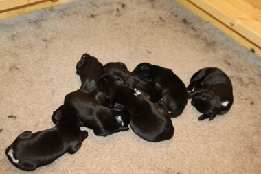 12.12.15.Zaga koser seg med å ha valpene her i stua. Da får hun med seg alt som skjer av mat til Kjell og meg :-) Hun har også selskap hele dagen. De er så silkesvarte og nydelige de små trolla våres. Ser ut til at de får lange flotte halser og har gode vinkler. Gleder meg så til de kommer seg opp på bena etter hvert :-) her er lennox og Zarina
