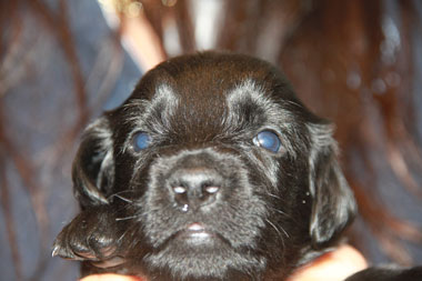 19.12.15. Nå har alle åpnet øynene helt å kikker på meg de skjønneste blå gluggene. De ser litt forundret ut så kanskje synes de jeg ser litt rar ut der jeg støtt og stadig henger over kanten på valpekassen å bare ser og nyter synet av de små vidunderne. Her er Zarina og Lennox