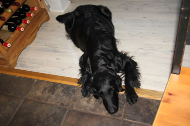 22.01.16. I dag satte Kjell og Zelma seg i bilen for å kjøre til Zelmas nye kjæreste i Sverige. De skal en tur på besøk og overnatte hos Ingrid og Hans i Lekesand også på turen. Jeg blir hjemme her med troll og de andre hundene. Trolla vil aller helst buse i stua om dagen. Da går det unna her :-) Her er Norah og Rocky