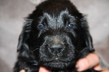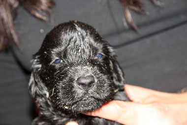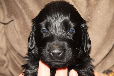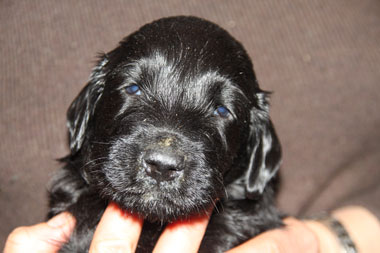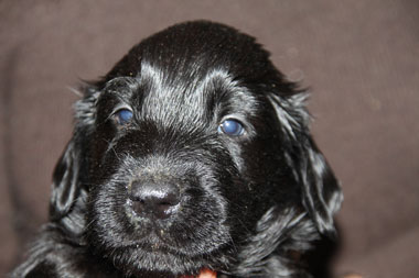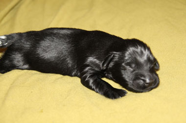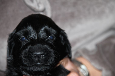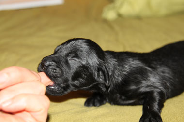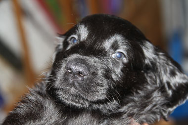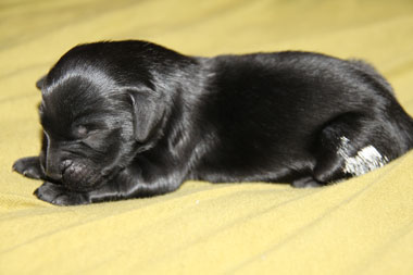 03.02.11 I går kveld hadde jente rumpe åpnet øynene. Det er så gøy. Nå begynner det virkelig å bli små hunder av disse små også. Melken går ned på høykant og de sover rolig i mellom måltidene. Bank i bordet. Nå er det nemlig på tide med litt søvn for meg også snart :-)Hønemor kan man kanskje kalle det. :-) Spennende nå fremover etter hvert som alle åpner øynene. Først er de knall blå. så blir de grå aktig før de til slutt blir nøtte brune. Her er Chanel og Saiko