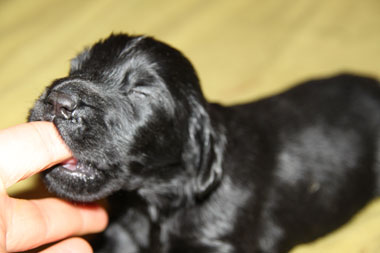10.02.11. I går fikk små trolla smake sin første hundemat. det smattet og smakte veldig godt. Det var vist like bra som melk. Nikita vasket og ordnet etter på. Tror det smakte veldig godt av babyene da. Hun stor koser seg fremdeles med å ligge å pusle med sinne skjønne små. Eller skal vi si store,for de får masse melk og vokser i rekord fart. Hennes første kull var også veldig store og fine valper. Så det ser ut som om Unike gjengen henger seg på den trenden. Mat vett det har de i hvertfall. Det er nesten så de spiser for mye melk :-) Her er Cleo & Apollon