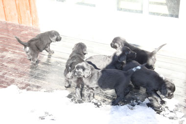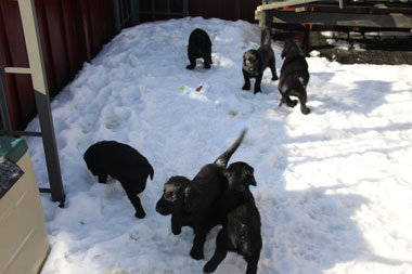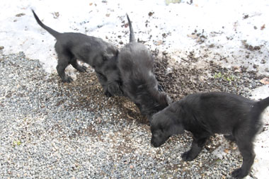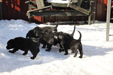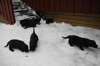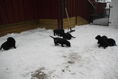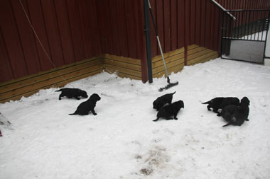 26.02.11. I går var Unike gjengen ute for første gang. Å tenk 3 bæsjet ute. :-) Flinke barn vi har synes jeg. De synes verden var ganske så stor når de kom ut. Snø var også rart. Dette måtte smakes på :-) Her er gjengen ute :-)Apollon er dyktig hund og bæsjer ute :-)
