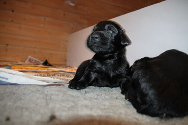 13.03.11. I dag kommer Jon Andre og Finn Arild for å ta en titt på trolla. Blir spennende å høre hva de synes om barne barna sine :-) De har mest lyst til å være i stua hele tiden nå. Sove under sengen er også en yndet plass i stua. Vet ikke om de håper jeg skal glemme å bære de inn igjen slik at de bare er stue hunder :-) Her er Apollon. det ble 2 bilder av han for jeg klarte ikke å kaste noen av dem. Så er det lille frøken Lea. :-)