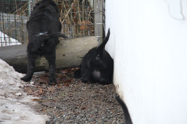 26.03.11. I dag blir det bare 2 troll igjen her. Og i morgen reiser Apollo også. Da blir Saiko alene valp noen dager før han skal til sin familie. De er masse ute om dagen i det flotte været. Gjett om de koser seg. De demonterer det meste. Her er Apollon & Saiko.