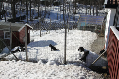16.03.11. Nå er det ingen ledige valper igjen av Unike gjengen. Alle har nå fått gode hjem som gleder seg til at de skal komme. Det er så deilig å vite. 5 troll flytter til helgen mens Saiko og Apollo blir her en stund til. Godt de er to. De kommer til å campe mer sammen med Tajko fra T kullet for han skal også være her litt til. Da har de selskap med hverandre og det er nok litt godt. Greit med noen leke kompiser. Hundegården blir brukt flittig nå. I går var det knall vær å gjett om de hadde det gøy ute. Kongen på haugen og sisten lek gikk så det suste. Bilde 1 er Cleo-Bilde 2 er Saiko, Bilde tre er Nikita som følger nøye med uten for hundegården at alle har det bra i kongen på haugen leken, Bilde 4 er Nikita & Lhea som følger med små trolla sine, Bilde 5 er trolla i lek, bilde 6 er Saiko & Chanel i full jobb :-)