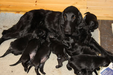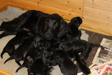 20.01.11.I dag er det Fødselsdagen til min første flat coated retriever "Shane "som startet min kjærlighet til flatten. Han ble født 20.01.1986. Kan ikke Nikita starte fødsel i dag da :-) Natten har vært helt rolig. Hun har ovet som en stein i dobbelt sengen sammen med meg :-)