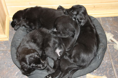 20.03.11. I dag reiser Zalto & Saga også til sine familie. Tilbake meldingene er kjempe fine så det er deilig å høre fra de som har reist. De er veldig glad i den ene hundesengen. Som dere ser så er det ikke fullt før det renner over her i huset :-) Det ligger 4 valper oppi her .Her er Saga som koser seg med Mie sin ball så er det Saiko.
