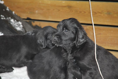 24.02.11. Det var så deilig å se igjen 7 banden. Og gjett om det har skjedd mye på 2 døgn. Nå er leken veldig godt i gang og de elsker å ligge i fanget. Så kos har de fått masse av det bærer de veldig preg av :-) Masse pels har de også fått så de ser nesten ut som små newfounlandere :-) Bare helt til å spise opp. Her er Lea & Saiko