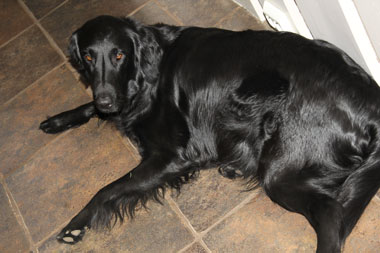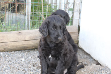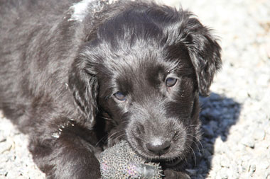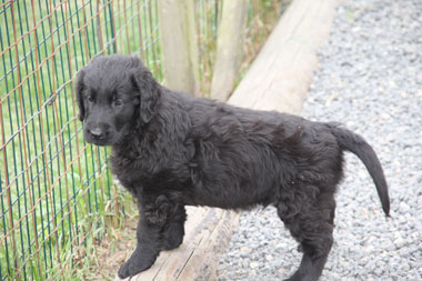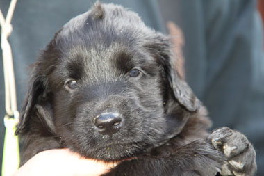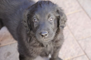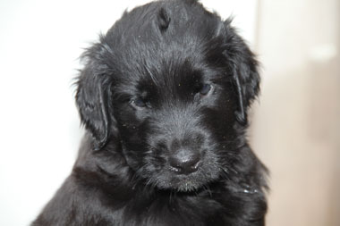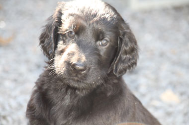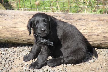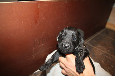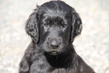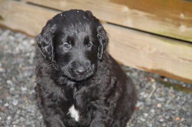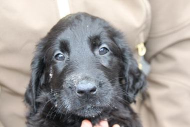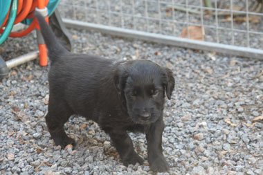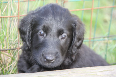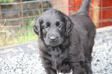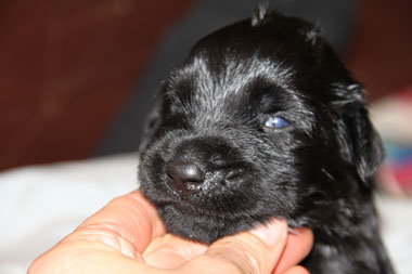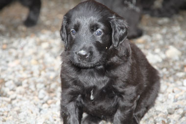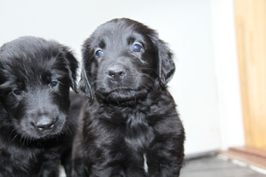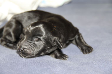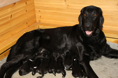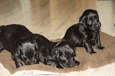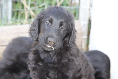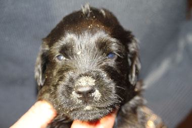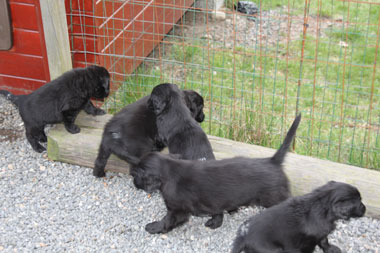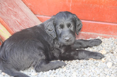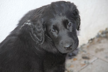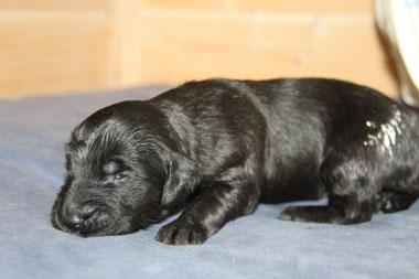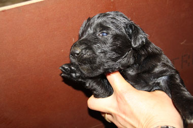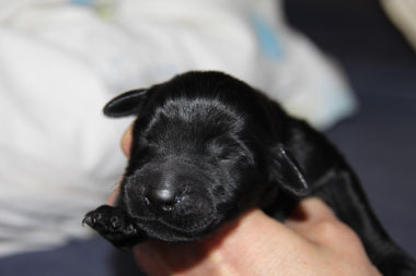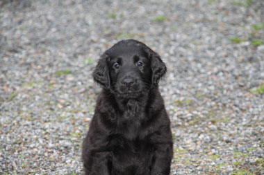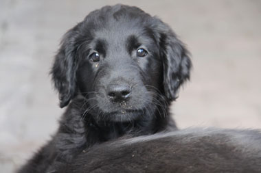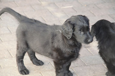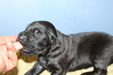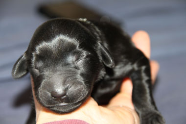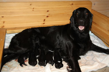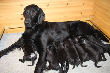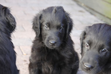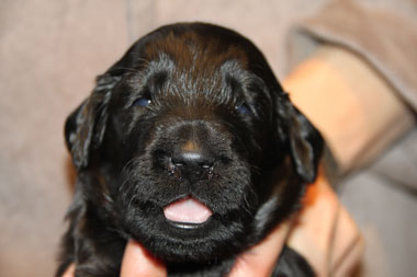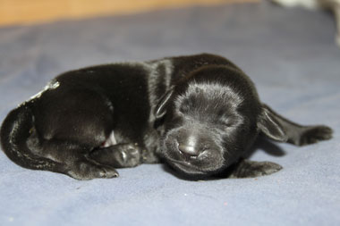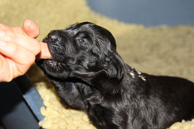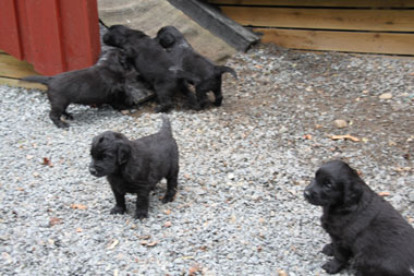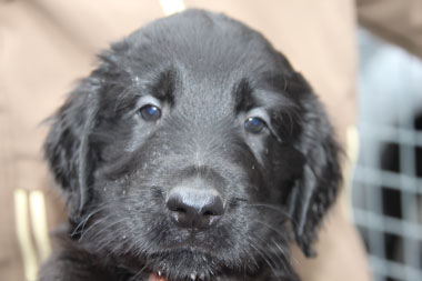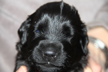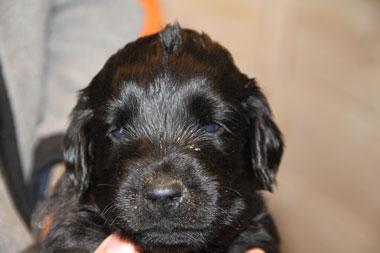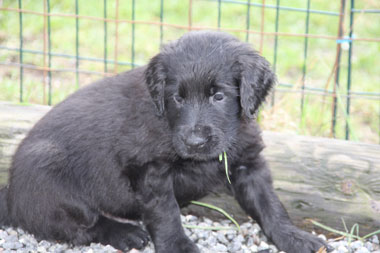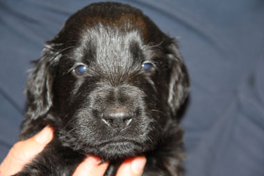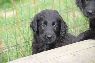 23.03.12. Nå er det så det glipper så vidt i øyen kroken til flere. Å det er så spennende. De har knall blå øyne de første ukene. Fargen går så over i en grå nyanse før den blir nøttebrun til slut. Det er vel ikke noe som er nydligere en øynene til en herlig flat coated retriever. :-) Det r ikke så lett å se for de kniper litt når jeg tar bilde med blitsen. Her er Harley & Zico