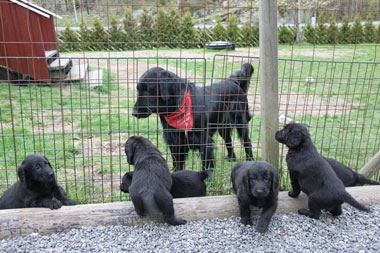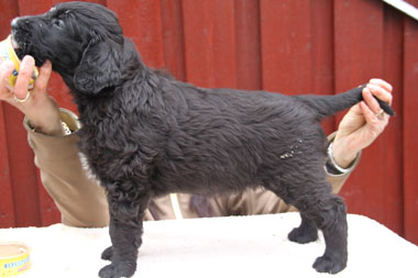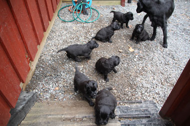 28.04.12. I går var alle på bordet å ble tatt bilde av til permen sin. Det gikk med 2 bokser leverpostei og Anita ble ganske så sår i finger tuppene etter hvert. For leverpostei. Det er topp. Det er blitt flotte valper med mye pels, god ben stamme og flotte stolte reisninger. De ser nesten ut som new founlandere :-) Nå er alle fordelt så nå er det riktig navn på riktig hund