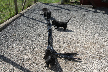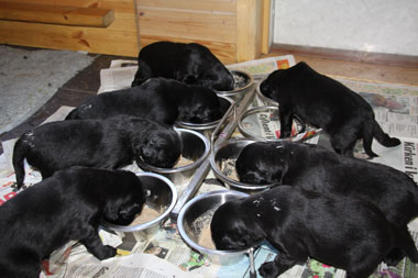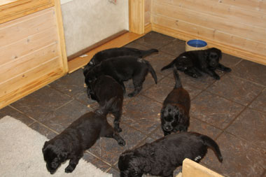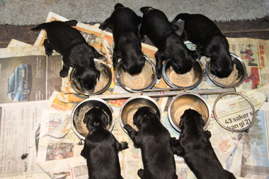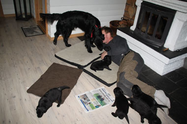 20.04.12. Litt forskjellige aktiviteter må vi finne på her er de på søk etter godbiter på gulvet. Veldig morsomt :-) Alle var en tur på bordet igjen i går. Blir spennende fremover nå for nå begynner de å strekke seg ut å man kan begynne å se mer av vinkler og reisning :-) Her er alle som leter etter godbiter så er det Zico & Harley P.s vi trenger aviser ;-)