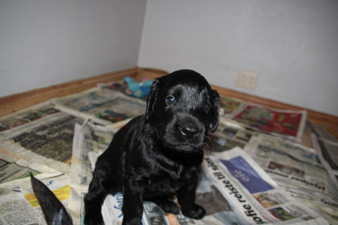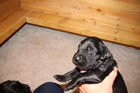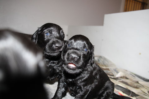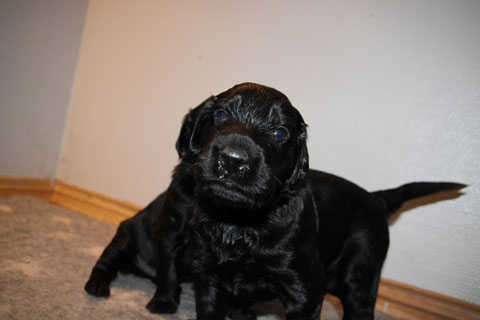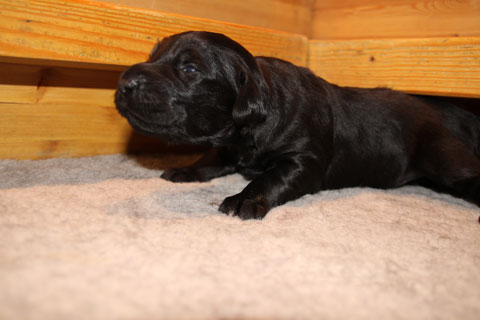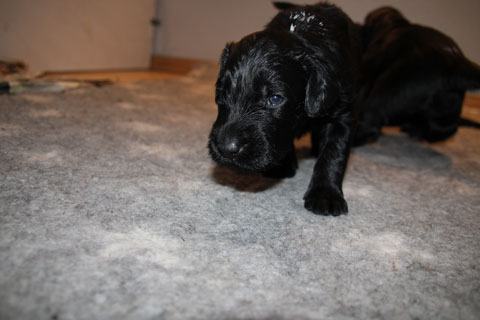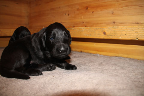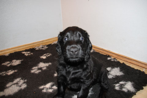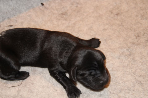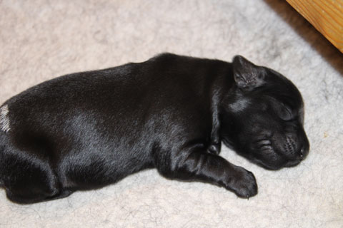 04.11.19. Nå har alle 4 åpnet øynene helt. De er bare så nydelige når de titter på en med de de skjønne blå øynene. Øynene er blå i starten men går gradevis over i grå nyanse før de til slutt blir nøtte brune. Det er vanskelig å få tatt fine bilder foreløpig med øynene åpne. de kniper igjen av det sterke lyset fra blitzen :-) Her er Gutt nakken og gutt merket halen.