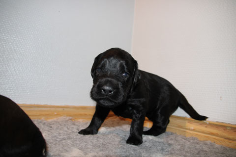 27.10.19. Trolla vokser veldig godt. Giga har masse melk og ligger for det meste i valpekassen foreløpig. Vi fikk lurt henne en liten tur i stua i går men hun er kjapt tilbake hos sine skjønne små :-) Her er Gutt nakken og gutt merket halen.