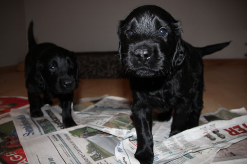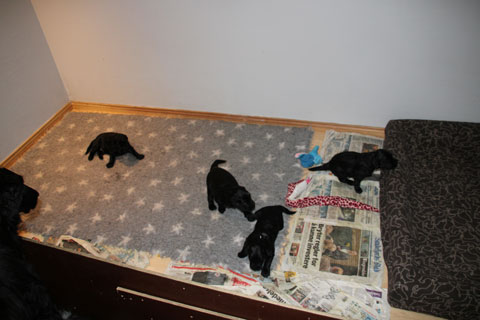 09.11.19. I går åpnet vi opp så de fikk bedre plass. :-) Stor ny verden. De har ikke helt skjønt å gå over helt på avisene enda. De vagger med overkroppen over på avisen å tisser men skjønner ikke helt at bakkroppen fremdeles er på teppet . Men det kommer fort nå i løpet av de neste dagene :-)I dag må jeg jobbe litt mens mamma og pappa kommer å passer hus og små stroll :-) her er Frida og Gutt rumpe