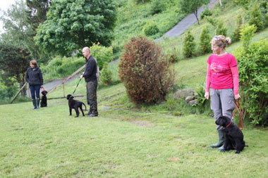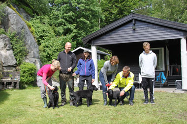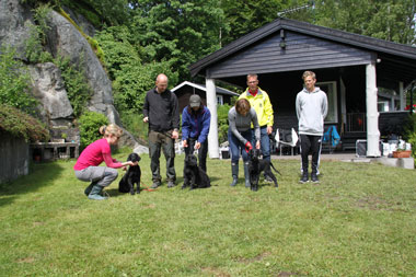 3 av 9 valper kom i dag hit på hytta for det første valpetreffet.Kjempe gøy å se igjen små trolla som var blitt ganske så store. :-) Utrolig gøy var det også at alle 3 har trenet bra og fått en flott kontakt med sin valp. Med litt varierende vær så var vi heldige med den første delen med lydighet. her fikk vi gått igjennom alt vi skulle før det kom en skikkelig regnskyll. Godt vi har tak å gå inn under :.-)