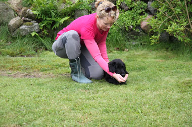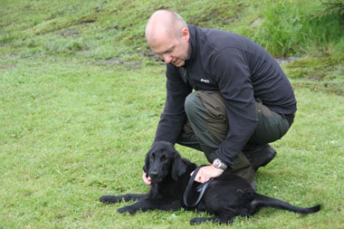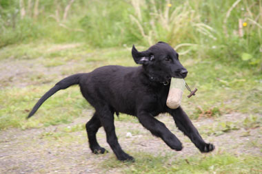 Etter en flott trenings økt så var det lunsj med lek for små trolla og grilling og kos på oss 2 bente.Deilig å dele gleder og frustrasjoner med andre som har valp i samme alder :-)For man får noen grå hår i hodet under valpetiden :-) men kos det er det.:-) Etter lunsj viste vi felt søk og hvordan man lærer inn dette. Dette er en aktivitet som hele familien kan holde på med. 5 minutter feltsøk tilsvare ca en halvtimes tur gåing i hode bruk . Så det sier seg selv at dette er en morsom og nyttig aktivitet som man kan holde på med hvor man en er.Alle fikk prøve seg på hvert sitt søk. Flinke små troll var det alle sammen.Og alle bar stolt på dummien. :-) Bilde en er Lykke så er det Dam . og det siste er Leah