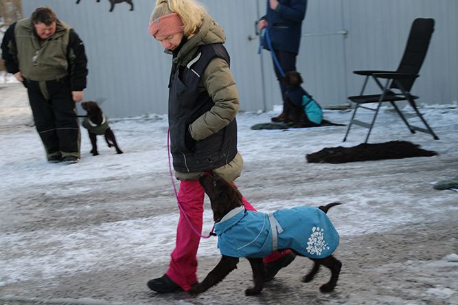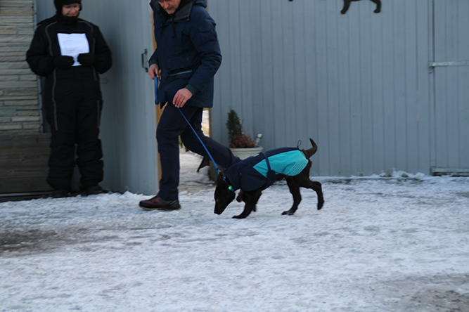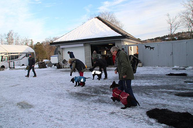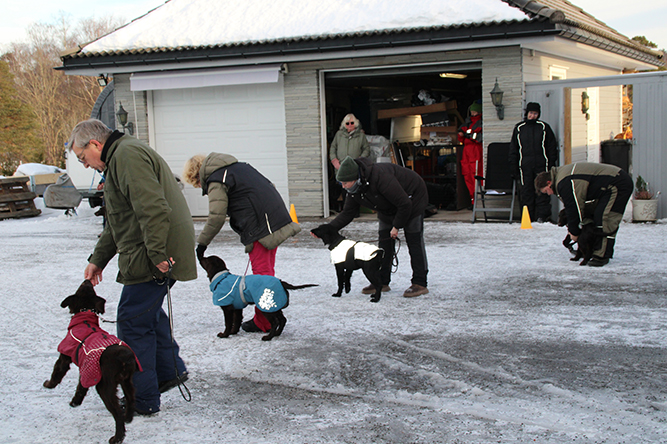 Vi var veldig heldige med været selv om det var litt kaldt :-) Vi fikk godt igjennom på plass , sitt bli sittende ,dekk,bli ligende, stå , bli stående og innkalling. Da var valpene kjempe slitne å klare for en lunsj. Det var vi to bente også :-)