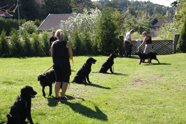 Etter feltsøk så gikk vi inn i hagen og hadde en god runde med forskjellige lydighets øvelser som bli sittende bli liggende bli stående på plass og hopp over hinder. Alle har en meget god kontakt med hunden sin og alle har kommet langt på veien. Utrolig flott å se. Hundene var etter hvert så slitne av alt at vi måtte slutte selv om alle på 2 gjerne skulle fortsatt :-) Flinke ivrig eiere dette her :-)