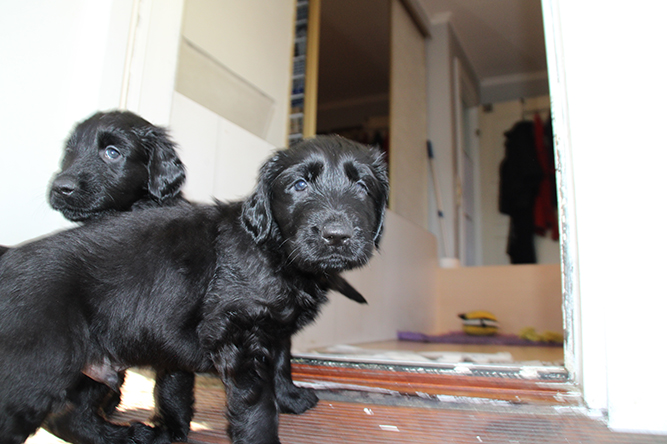 24.10.25. I går skjedde det masse her. 3 turer ut etter mat og masse bæsj og tiss ute. Deilig for meg :-) De synes det var en stoooor verden utenfor, besøk i går ettermiddag var også populært. Da tok vi en tur ut i stua. I dag sprut regner det her og det er meldt slik i hele dag så det spørs om vi tar turen ut. Det er masse besøk gjennom helgen å alle må passe på at de kommer til den tiden som er satt opp. Det er tett og valpene må få sove litt mellom besøkene. Husk at de er små enda å sovner fort også når de har vært våkne en stund. Derfor også like viktig å komme når vi har avtalt så de ikke sover seg gjennom hele besøket :-) VI TRENGER AVISER så ta med dere som har noen Spør naboen ,jobb o.sv om noen har aviser :-) Her er GHB og GVB