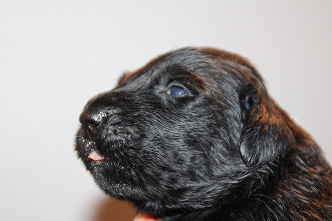 06.10.25.Nå begynner den neste spennende tiden her. Øyen sprekkene begynner å bli mer å mer markerte å de åpner øynene i løpet av få dager. I ngen har begynt å glippe noe med øynene enda men man ser å tydelig at det er hakket før nå. De ser jo ikke så mye de første dagene men det er så fantastisk når de begynner å glippe mot den store verden :-) I dag er det ny kontroll på veterinær klinikken. Men i dag lar vi valpene bli igjen hjemme. Jeanette hjelper til så e er i trygge hender :-) Blir ikke lange tiden borte. Her er gutt høyrebak og gutt venstre bak