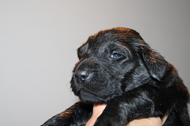 04.10.25. I dag er de skjønne små blitt en uke gamle. Klo klippen ble gjort i går kveld og det gikk fint . Selv om de ikke akkurat sitter rolig når jeg prøver å klippe klørne :-) I dag er det mark kur på menyen. Den må de ha 4 ganger før de skal flytte herifra . Smaker aldri så godt men lurer det i de. Kimmie sin temperatur er mye bedre. Hun har litt mindre melk foreløpig etter infeksjonen så vi hjelper til med flaske hver 3 - 4 time så alle får i seg nok. De koser seg med den ekstra melken å er så fornøyde :-)Nå klokken 03.30 er stormen på full fart her ute. Så turte ikke vente med å sende ut valpedagboken i tilfelle nett og strøm forsvinner etter hvert her .Det uler i huset men hundene tar det helt med ro. Her er Gutt merket nakken og jente merket rygg.