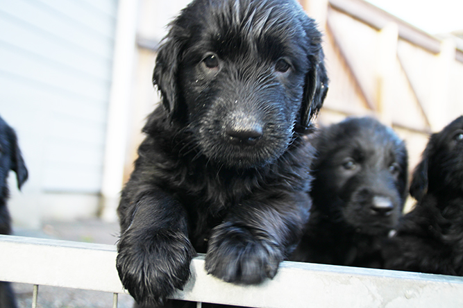 14.10.25. Utviklingen går i 100 her. I dag må vi åpne mer plass . De er blitt sykt flinke til å gå ut på avisene å gjøre i fra seg. I dag skal de få "gressplen" ved døren .jeg skjønner faktisk ikke hvordan folk klarer å ha valper  i en liten valpekasse frem til 3 ukers alder. For her går det unna. De våkner å går helt ned i andre enden av innhegningen sin . Å de vokser så det knaker så det blir jo fort trangt. Hørselen har nå åpnet seg å de hører veldig godt når vi kommer inn i rommet. Da blir det liv :-)Her er gutt halen og gutt hode