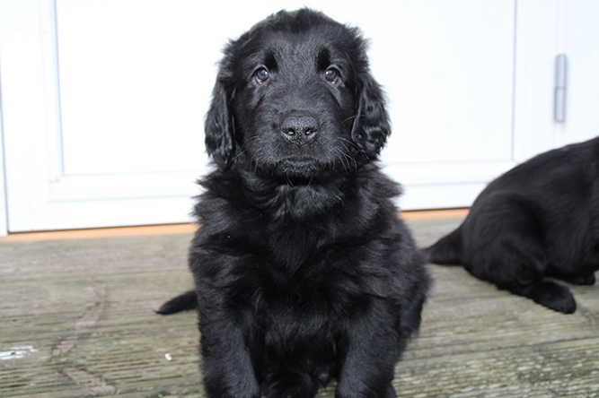 14.10.25. Utviklingen går i 100 her. I dag må vi åpne mer plass . De er blitt sykt flinke til å gå ut på avisene å gjøre i fra seg. I dag skal de få "gressplen" ved døren .jeg skjønner faktisk ikke hvordan folk klarer å ha valper i en liten valpekasse frem til 3 ukers alder. For her går det unna. De våkner å går helt ned i andre enden av innhegningen sin . Å de vokser så det knaker så det blir jo fort trangt. Hørselen har nå åpnet seg å de hører veldig godt når vi kommer inn i rommet. Da blir det liv :-)Her er gutt halen og gutt hode