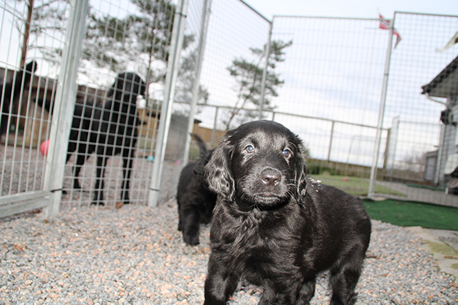 16.10.25. Den første spede leken har begynt . Så i går fikk de masse leker å holde på å sutte på å bite i også . Det var spennende det. Katten Katia tok seg en undersøkelse runde oppi valpekassen også i går. Kimmie er heldigvis en veldig snill hund så hun stoler helt på husets katter :-)Saga var en kjapp tur innom på besøk i går også. Hun er nå 45 dager på vei å er god å rund. Hun fikk være med litt jakt trening i går. Å er kjempe sprek . Men man ser jo at magen begynner å hemme henne mer :-) Her er jente rumpe og gutt rumpe