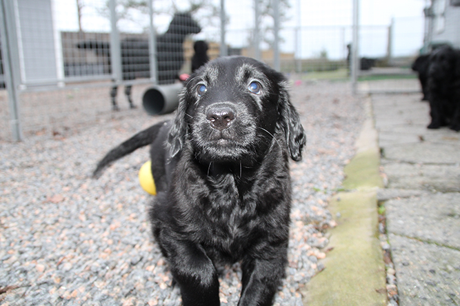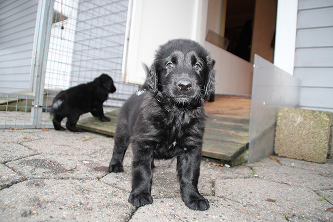 14.10.25. Utviklingen går i 100 her. I dag må vi åpne mer plass . De er blitt sykt flinke til å gå ut på avisene å gjøre i fra seg. I dag skal de få "gressplen" ved døren .jeg skjønner faktisk ikke hvordan folk klarer å ha valper  i en liten valpekasse frem til 3 ukers alder. For her går det unna. De våkner å går helt ned i andre enden av innhegningen sin . Å de vokser så det knaker så det blir jo fort trangt. Hørselen har nå åpnet seg å de hører veldig godt når vi kommer inn i rommet. Da blir det liv :-)Her er gutt halen og gutt hode