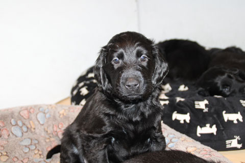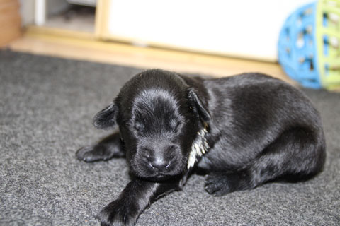 Kl 17.50 De to første valpene er kommet :-) 2 flotte sorte gutter :-) Emma er helt fantastisk med sine skjønne troll. Flere vil ut :-)