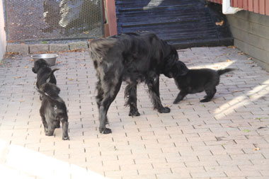 14.10.13. Dagen i går gikk kjempe fint. Inger Johanne ,Dino & Fiona gjorde en super jobb her. D.v.s det var vel helst Inger Johanne som gjorde jobben.:-) Valper og voksne var godt mettet på kos,kjærlighet,mat og stue kos i løpet av dagen. Jonas og jeg gikk til en 3 premie i BK .:-) Ikke dårlig av gutten som går med 2 tisper med full løpetid her. Kjell rakk hjem fra Finland og gikk rett på jaktprøven og rakk det med 10 minutters margin. Zaga å han gikk til en flott første premie. Hun hadde prøvens beste felts søk. :-) Og det var kjempe gøy.Søkte like bra på vann som på land. Så nå er vi klar for å trene Ak i vinter før neste års sesong :-) Kjell å små trolla tok seg en første tur ut etter mat i går kveld. Gjett om det var spennende da.Lhea er parret med sin kjæreste C.I.B. , NORD, FI, EE, LT & NO CH, SE sh CH, BALTW-08, NW-10, FIW-10, NVW-12. HeW-12, HeVW- 12, FVW-12 Toffedreams Scuff'n Puff .Og vi gleder oss til enda et herlig kull som blir helsøsken av Qikke Zaga om ca 9 uker. En herlig helg :-) Her er Cava & Dennis