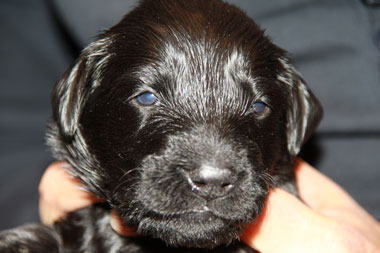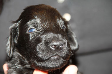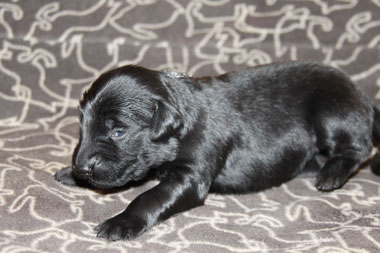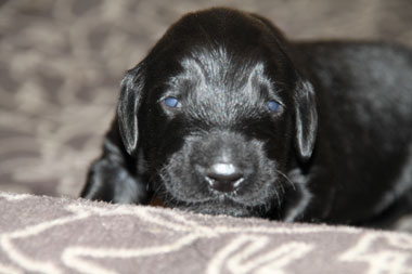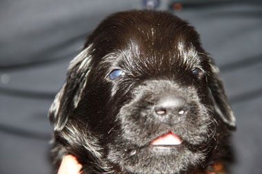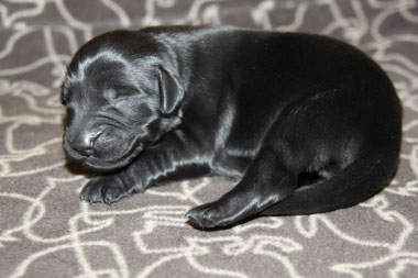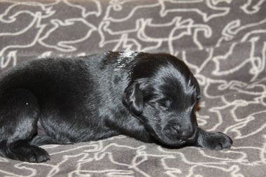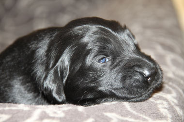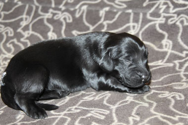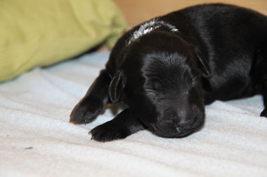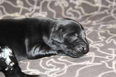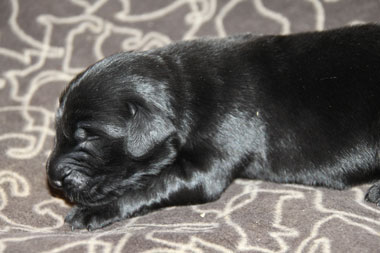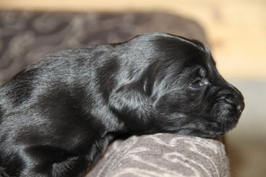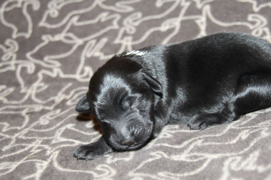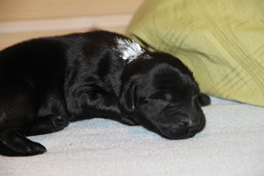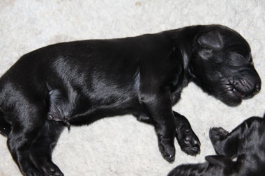 23.09.13.Valpene har ikke åpnet øynene enda men du som det nærmer seg :-)Øyen sprekkene blir bare mer og mer tydelige. Vi har nå åpnet slik at Millie kan vandre ut og inn i stua som hun vil og det setter hun pris på. Hun har lyst på mer selskap nå :-) Hun gir melk ca hver 3 time nå så ,er det litt rumpe vask midt i mellom melkingen ellers så sover jo valpene å da er det kjedelig :-) Her er Cava & Zofus