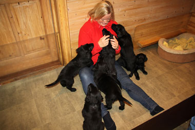 03.11.13.I dag er det masse besøk her til små trolla. De elsker å sitte fanget å kose. Og de elsker å tygge å bite :-) Så det blir nok kjempe populært.Vi har begynt å plasser hvem valp som skal hvor nå. Er ferdig med gutta så skal prøve i løpet av dagen å få satt riktig navn på riktig valp. jentene er vi også i gang med men har ikke helt landet enda. Familien til Millie kosa seg med trollungene i går kveld.Her er Trine med små barna. Så er det Nova & Zofus